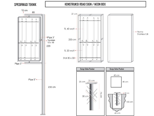 Road sign ini dirancang khusus untuk kebutuhan informasi luar ruangan yang tahan terhadap cuaca dan memiliki struktur kuat. Dengan bahan besi hollow dan pipa galvanis sebagai penyangga, produk ini cocok digunakan di pinggir jalan utama, kawasan perkantoran, hingga area industri.